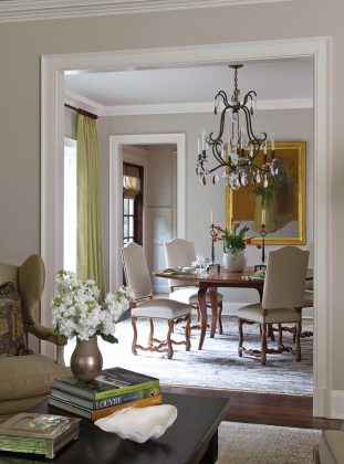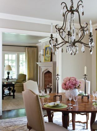 “It was important to this couple that they achieve a comfortable home that was respectful and appropriate to its period architecture,” says Duffy. “Ashley and I had the opportunity to start fresh with the furnishings, so we selected traditional pieces intermixed with antiques.”