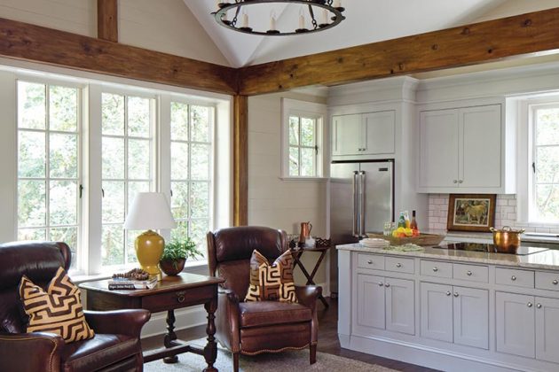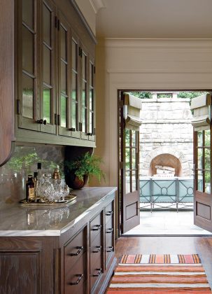To round out this noteworthy design team, interior designer Teri Duffy and assistant designer Ashley Pendleton Shannon joined in. Together, these professionals made it their mission to fuse the original character of the two structures with the homeowners’ lifestyles and tastes.