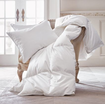 European White Goose Down Duveet and Down Pillow by Peacock Alley