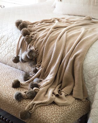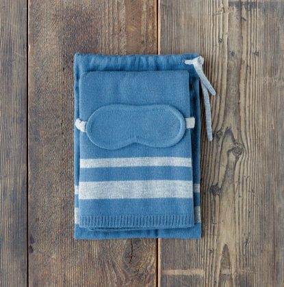 Luxurious travel set made from 100% baby alpaca wool; Available in 9 colors. Blanket dimensions 35”W x 50”L; $295; aliciaadamsalpaca.com