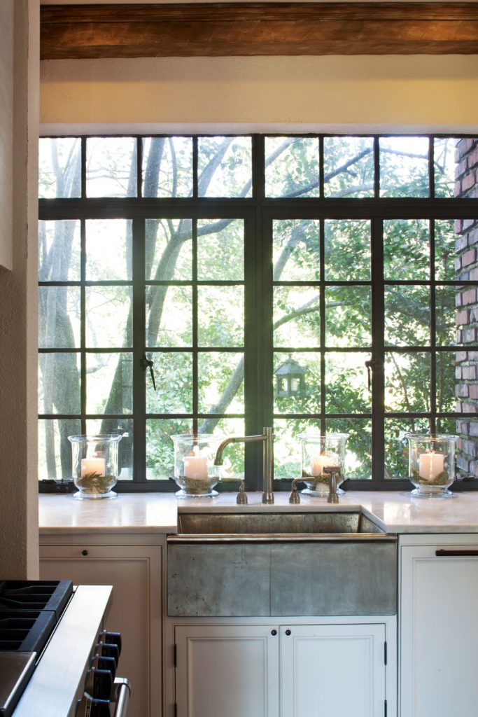 What the space lacks in size it makes up for in function. Storage abounds in the heart of this home—pots and pans reside in the island, and open shelving displays treasured pottery and a few well-used cookbooks.