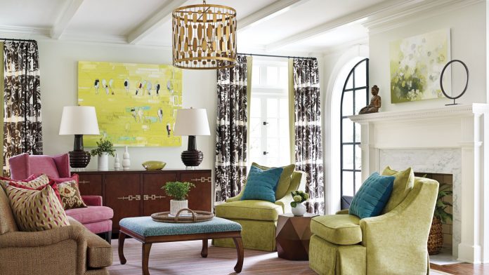 Always bright colors—that is part of lawyer and emerging party planner Katie Newsom’s personal philosophy. So when she and her husband, Sedgie, bought a circa-1925 home in the Druid Hills area of Atlanta, she saw it as an opportunity to give the Mediterranean Revival–style structure new life with a makeover of prismatic proportions.