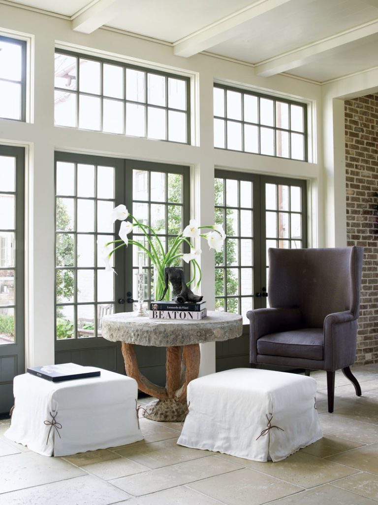 Spearman enhanced the serenity with a palette of charcoal grays and dark browns accented by lavender, which he describes as a “new neutral.” Throughout the home’s large entertaining spaces and more intimate areas, he drew from the timeless style of John Saladino, one of his favorite designers, by mixing modern furniture with English antiques. “We kept everything very understated with pieces that were interesting and eclectic yet mixed well together,” he says.