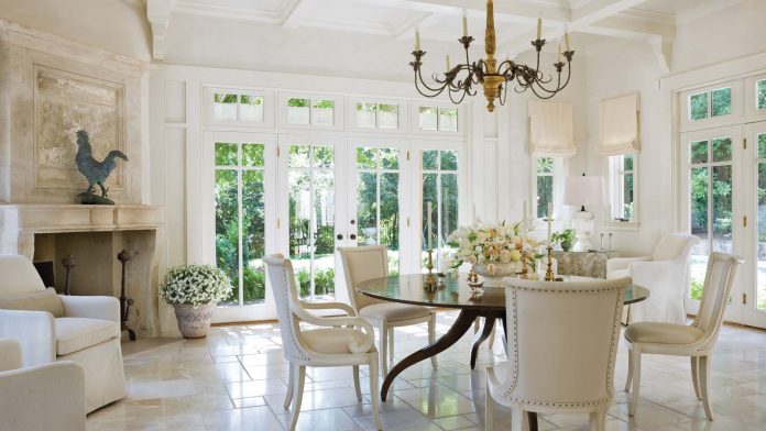 When Wayne and Gloria Knox called on the Washington, D.C., design firm of Solis Betancourt & Sherrill to renovate and decorate their newly purchased home in Arlington, Virginia, they tasked the team with two major objectives: to rescue the 1950s interior of the Tudor-style house and to provide an appropriate backdrop for their extensive collection of French and Swedish antiques. “We’ve been friends with Wayne and Gloria for 25 years,” says Paul Sherrill, “and Wayne has a great relationship with several fine antiques dealers in the area, such as Marston Luce, Tone on Tone, and DHS, among others. As a result, his collected pieces work beautifully in the home.”