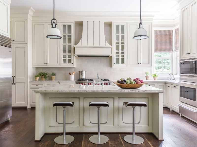 In reference to her art collection, the homeowner adds, “It’s a true passion of mine, especially photographic art. I also gravitate towards pieces that are architectural in nature.” The selections are unique and engaging, such as a circular wood carving by James McNabb that resembles a series of skyscrapers, a neon abstract by Robert Kelly, and Abelardo Morell’s upside-down photograph of Central Park in summer transposed on a hotel room image. All of the pieces add just the right amount of personalization to a home that has transformed from dull to dazzling.