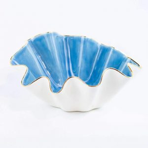 This eye catching Handmade Ceramic Wavy Bowl is glazed with high fire stoneware clay and adorned with a low fire 22 kt gold luster edging. It is available in several sizes and colors. ![]()