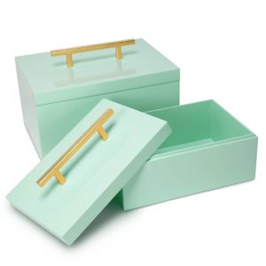 From coastal and beachy-chic to upscale farmhouse, this set of 2 Blair Boxes in Mint is sure to beautifully accent any living room, bedroom, or office space it illuminates.