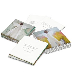 Designed to be a source of strength and solace, Comfort Scripture Cards features an original angel on one side, and an inspiring scripture on the other. Each set includes 26 4×4 inch double-sided cards and one acrylic base for displaying the scripture cards. ![]()