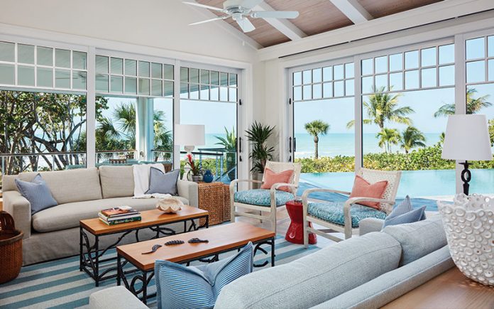 Interior designer Georgia Carlee combines worldly influences and coastal refinements for a Florida Gulf Coast home.