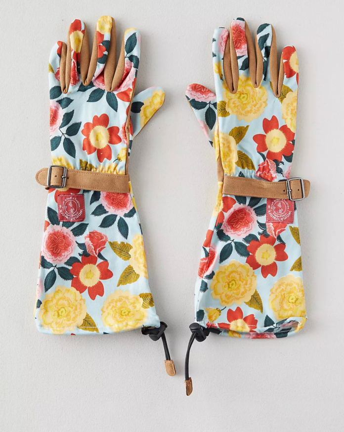 Featuring a new Heirloom Garden print designed by Portland, OR-based illustrator Kate Blairstone, these essential garden gloves feature extra-long cuffs to protect your arms from light scratches, insect bits, and sun exposure. The palms are made from synthetic leather with reinforced thumb and pointer finger, while lightweight cotton twill arms has a touch of spandex for extra flexibility. Terrain; $38