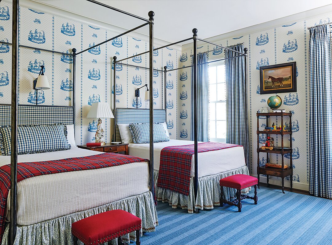 To prevent her clients from facing a design overhaul every couple of years, Ratliff’s approach to establishing the basic elements of a child’s room is classic and simple. “Since no parent wants to worry about redecorating to fit each stage of their kids’ lives, I always endeavor to stay one step ahead,” she says. Keeping things updated that are relatively painless and inexpensive to replace, like bed linens, throw pillows, and rugs, can allow parents to tweak items without starting from scratch. “Creating rooms that youngsters can grow into is the key,” she adds.