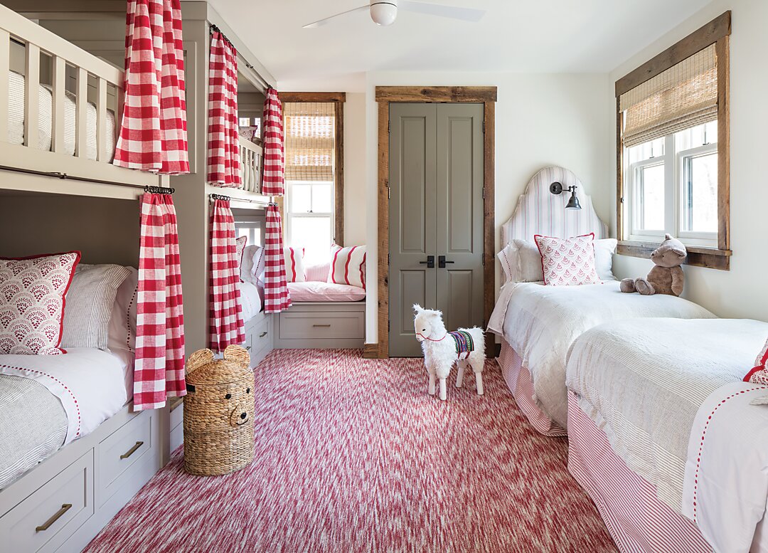 Durability is another factor that’s high on the designer’s list for successfully designing a kid’s room. “Amanda and I frequently use indoor/outdoor fabrics—and even vinyl options—which can be easily cleaned,” she says. Likewise, these designers prefer painting walls with an eggshell finish. “In making this decision ahead of time, parents will discover that scratches and scruffs usually come right off with a Magic Eraser.”