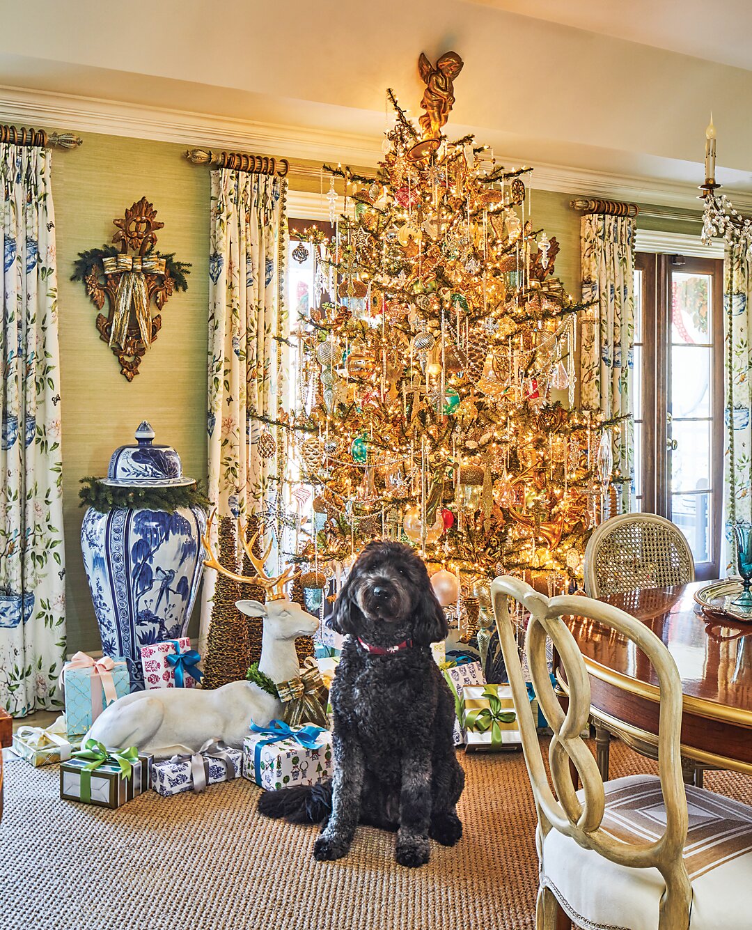 The designer begins the festive process by looking for ribbon and other details that match the fabrics and finishes in each of the home’s rooms. His mother has an extensive holiday collection, so Bees loves that they never have the same décor two seasons in a row. He typically begins planning the next round of decorations as the current season’s is being packed away— which is always after Epiphany. This way, most of the items are ready to be displayed as the boxes are taken out of storage. “Things are always moving, joining new collections, and being presented in different ways,” he says. “What would be the fun in the same look every year?”