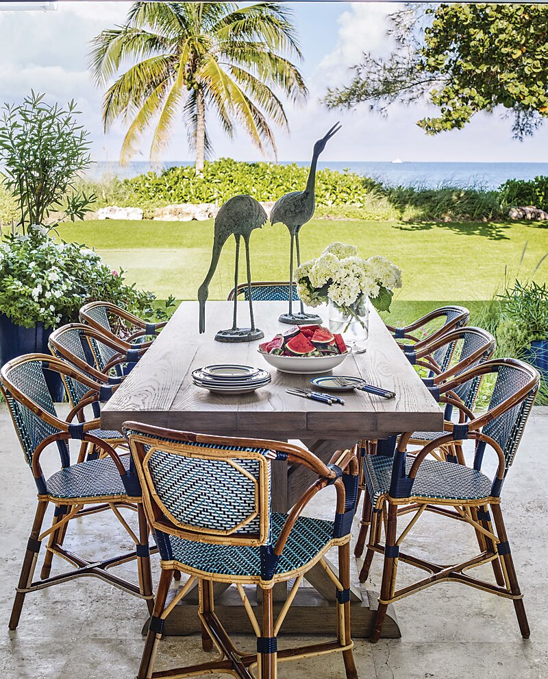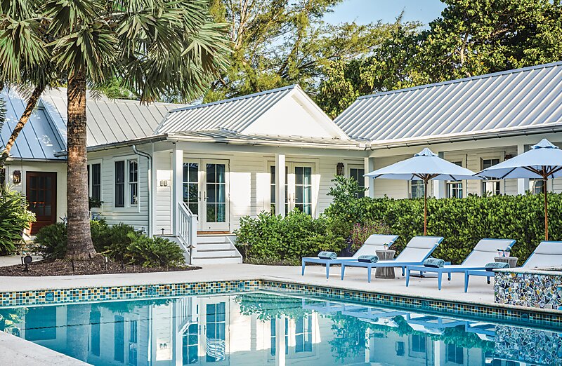 For years, longtime clients of interior designer Carolyn Kendall, the owner and lead designer of Alcott Interiors, pined for a particular house in Boca Grande, where they already owned a condo. The appeal of the property was undeniable—a beautiful beach, incredible panoramic views of the water, and plenty of acreage. When the house was finally for sale, Kendall’s clients did not hesitate to make it their own. The one-story sprawling house, however, needed a complete makeover. “We gutted the entire house essentially; only the facade stayed the same,” says Kendall. The homeowners brought on Nashville architect Ron Farris, who they had worked with before, to come up with a plan alongside Kendall.