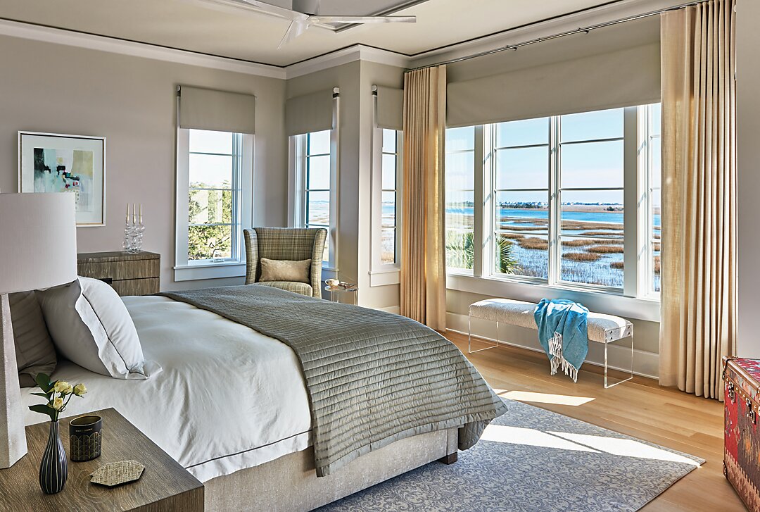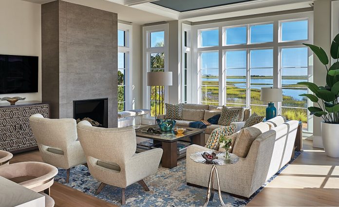 Across-country trip with her husband led Sally Williams to rethink her accounting background for interior design. “I had always been artistic as a kid,” she says. “In California, I fell in love with a gallery that left me feeling calm and inspired.” After the couple returned home to Raleigh, North Carolina, Williams found herself wanting to recreate that sense of joy and opened her own gallery featuring local art as well as gift items. Here, her passion for interiors became evident. She started with color consults before pursuing more education in the field and ultimately closing the gallery to turn her attention to full-service design, like this home on the Wilmington sound.