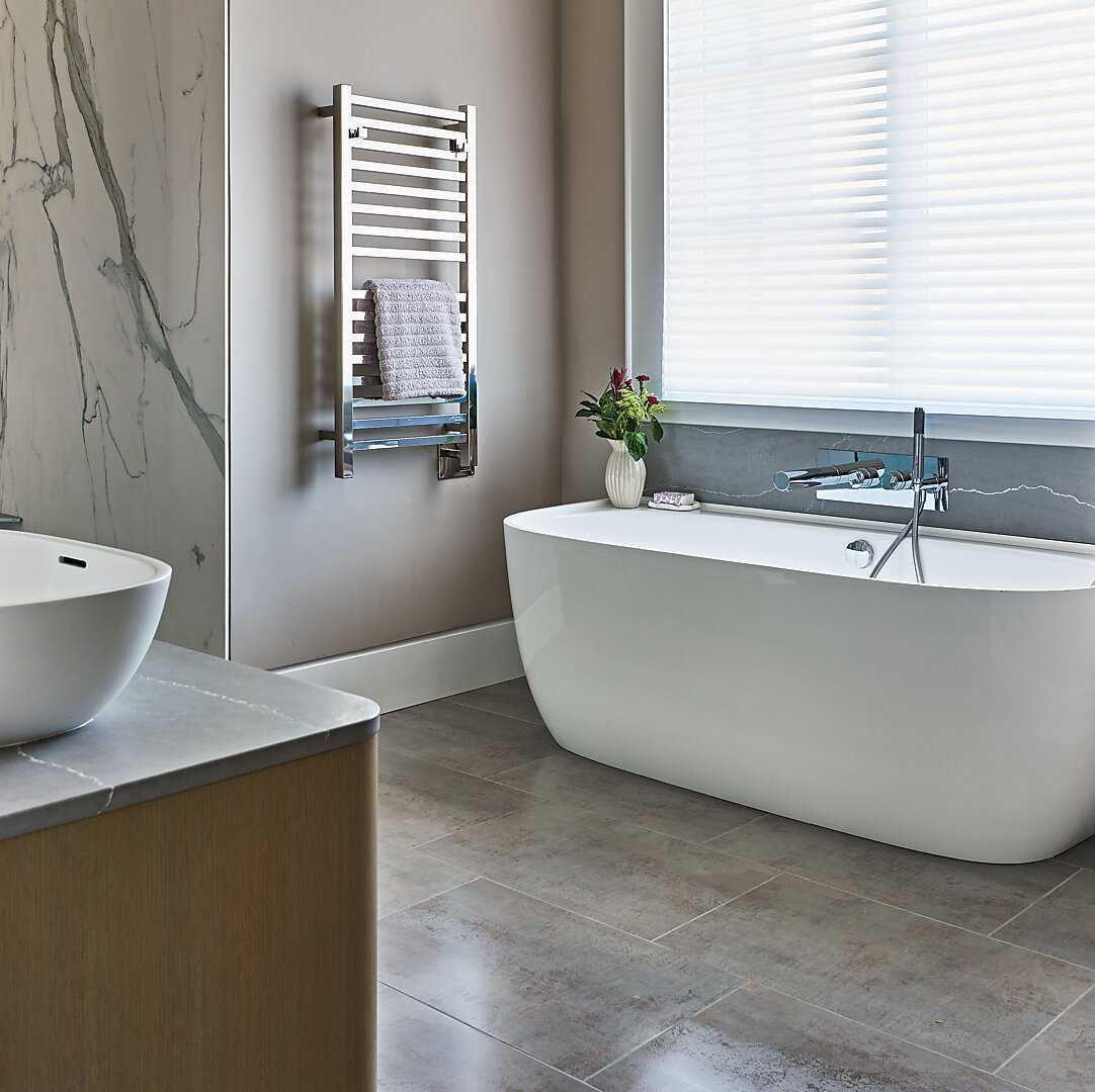 Positioned on a two-and-a-half-acre lot in a gated community, the biggest factor playing into both the structure and the interiors was undoubtedly the view, with the team wanting to take full advantage of its earthy yet ever-changing palette. Regarding the architecture, the home was designed at an angle to allow for a panoramic view of the sound from multiple vantage points. Walking in the front door, one sees the dining space from the entry and straight through to the landscape of the sound, making it not just a part of the home’s environment but a living element of the design. “The house is L-shaped but not at a perfect 90-degree angle, so there were some areas that had challenging angles in the interiors,” Williams says, adding that a cohesive palette and the repetition of materials were employed to bring continuity to the eye.