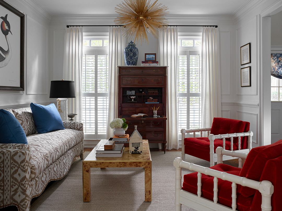 The designers knew that to fully update the home and create the best backdrop for their decoration plan—one that included beautiful antiques and pieces to become new family heirlooms—it would take more than some new furniture to achieve. Given the spaces were relatively small, they realized walls and storage needed to be added, and the formal living room had to be rethought.