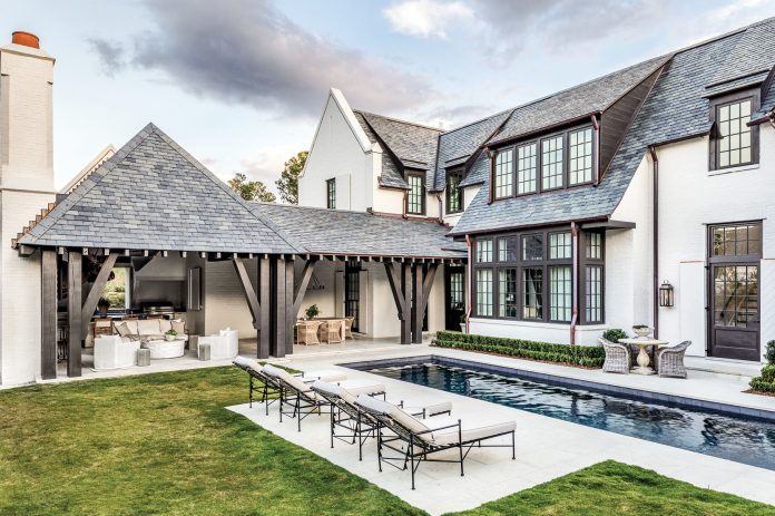 And when it came time to make plans for a new build, the desire for a truly bespoke sanctuary away from the rigors of work and school inspired them to contact Montgomery, Alabama, architect David Baker of Tippett Sease Baker Architecture, whose work they’d admired in the homes of friends. “After taking a good look at the property and discussing the clients’ desire for respite, we carved out this idea of an inner courtyard,” says Baker.