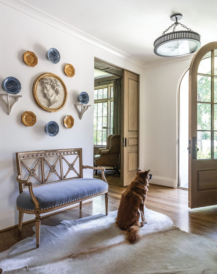 Encouragement and compromise are essential to harmonious relationships but can be just as valuable when building a new home. With one child and another on the way, interior designer Virginia Cheek and her husband, Andrew, knew they needed more space. Living in a desirable Atlanta neighborhood that they loved too much to leave, they decided to build onto their existing lot, which, at the time, accommodated a 1,500-square-foot ranch house. Their goal was to create a forever home—and get it right. Cheek, the owner of Virginia Cheek Interiors, considered how the design would build upon the base layer in phases as their family evolved, and she devised both short-term and long-term plans.