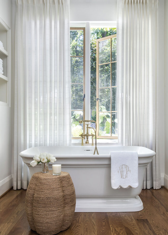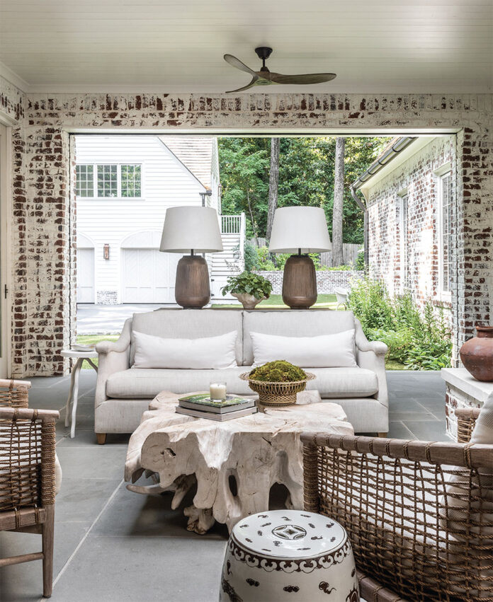 “We mixed elements that conjure a sense of both the sea and the mountains,” notes Cheek. “My husband, a definite beach person, and I, historically a mountain person, formed an alliance. For the materials and palette, I looked to mountainous locations that accessed the sea—Scotland, California, and Cornwall. I wanted to meld all this inspiration with Southern influences—hospitality, attention to detail, quality fabrics. I hope that it shines through.”