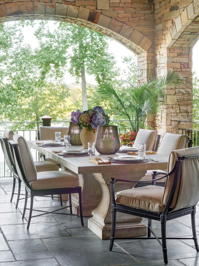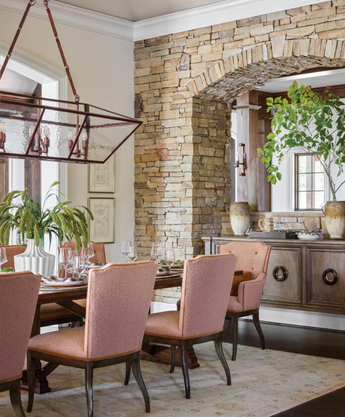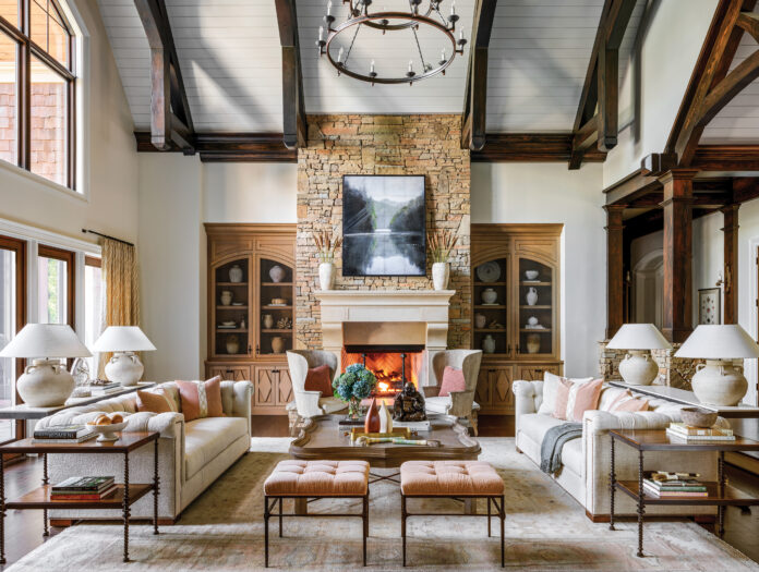 Warm, inviting, and gracious. Those are the words designer Cynthia Masters uses to describe the owners of this vacation home situated on the shores of Lake Keowee in the Blue Ridge Mountains. And, if homes are said to be a reflection of their owners, then it stands to reason these descriptors would apply to the residence as well. With architectural stone and wood details seen alongside thoughtfully curated finishes and furnishings, the tangible blend is also a reflection of Masters’s approach to interiors as a whole.