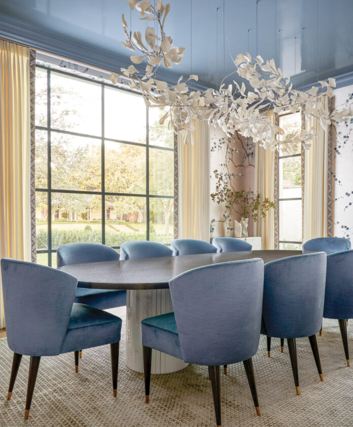 Early in the process, Stocker recommended his clients reach out to interior designer Erin Sander. “We like to have a hand in all the finishes, and I think that’s prevalent in this house,” says Sander, who has helmed her own Dallas-based firm since 2009. “They wanted a place that felt established to host friends and that they could be proud of—but they are also raising their family here, so it had to be comfortable,” she says. While the home’s shape seeks to accomplish that goal with defined areas for receiving guests on the smaller end of the structure and a larger, more family-oriented corridor that is revealed as you turn its corner, Sander used visual cues to further its story.