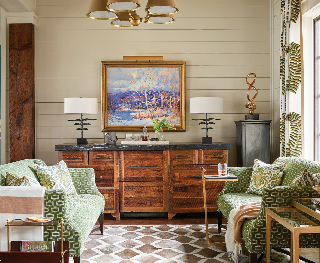 CK: Southern hospitality is truly a part of our environment in Tennessee, Georgia, and the Carolinas. A few things that come to mind when designing a Southern home are creating unique entertaining environments, be it in dining rooms, Carolina rooms (a type of sunroom), or game rooms that become gathering spaces to host friends and family. The offering of a signature cocktail or a glass of iced tea on arrival gives a guest a wonderful Southern welcome.