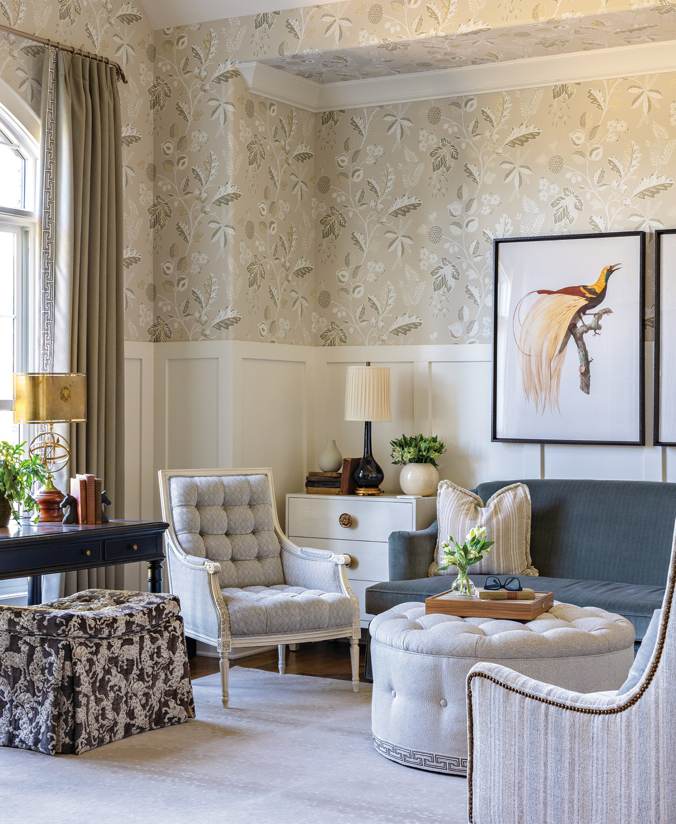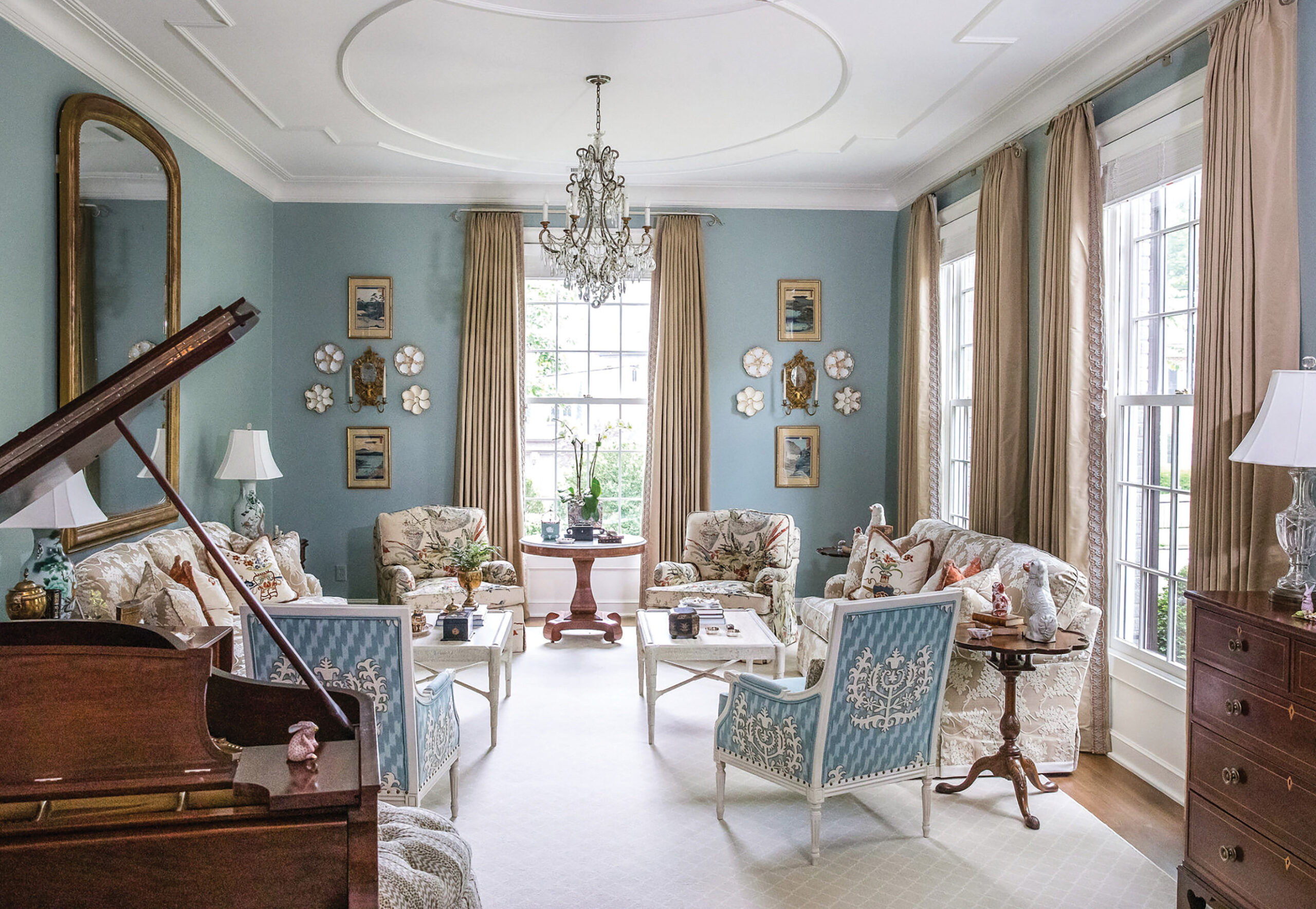 ER: Major influences in my work have been Charles Faudree, Mario Buatta, Mark Hampton, and Dan Carithers. I love using yards and yards of fabric in my rooms with a classic, traditional aesthetic that leans more English than French.