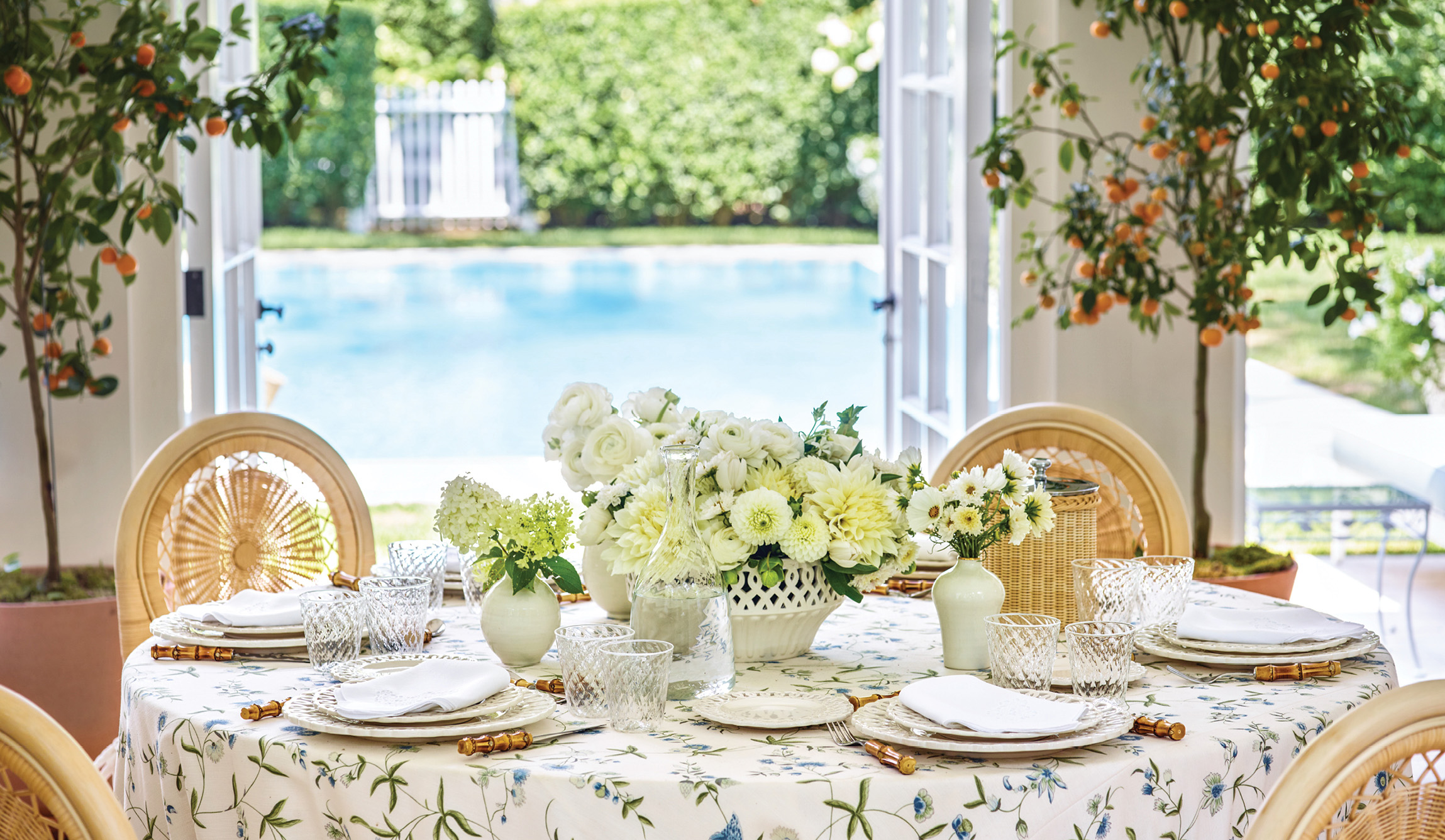 Lauder also takes readers through her homes, showing how she brings the garden indoors. Elegant floral wallpaper in the dining room feels sophisticated and timeless, botanical drapes in the bedroom are traditional and luxurious, and her contemporary, floriferous tabletop collections add effortless modernity to her entertaining.