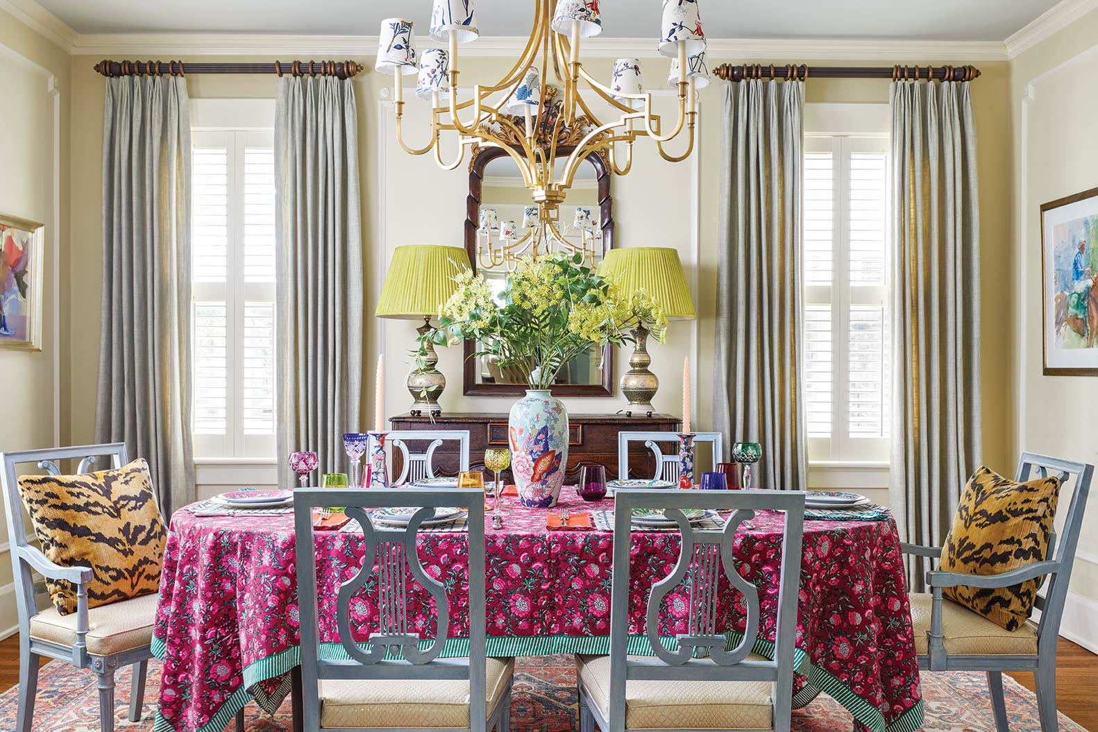 “I’m a girl of many mantras,” says the Brazilian-born, Kentucky-raised interior designer. “Among them is ‘banish the beige.’ I thrive on creating homes that are saturated in a kaleidoscope of colors and layers of prints.”