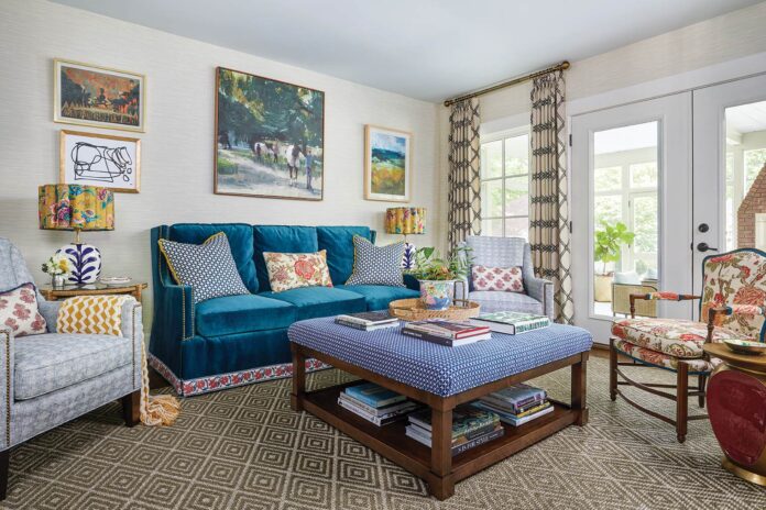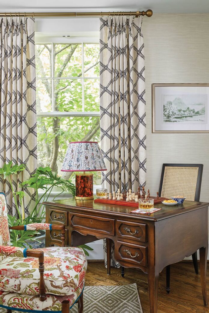 Having extensive experience with textile design, Ladd began exploring the world of interiors and quickly discovered that her passion for prints was not limited to couture fabrics but extended to upholstery and drapery fabrics, rugs, and wallcoverings, which mixed effortlessly in her own home and in the homes of the neighbors and friends who enlisted her help. Lexington residents Christa and John Marrillia also took notice, and when they decided to refresh their young family’s home, they entrusted Ladd with the project.