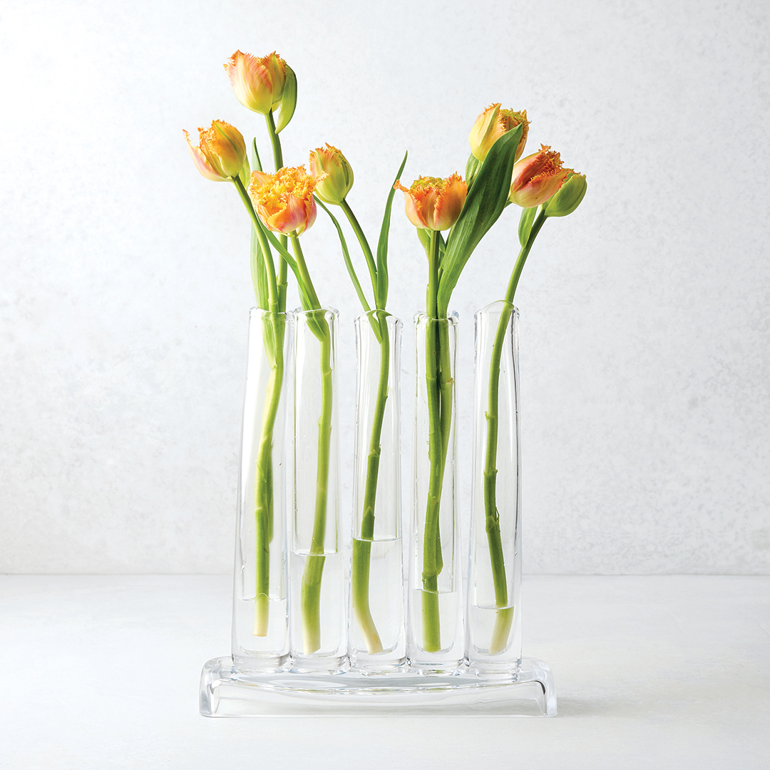 ELLI SMALL SCISSOR-CUT GLASS VASE BY HUDSON GRACE; handmade in Poland from thick, scissor-cut glass for a versatile and understated look; $298; hudsongracesf.com