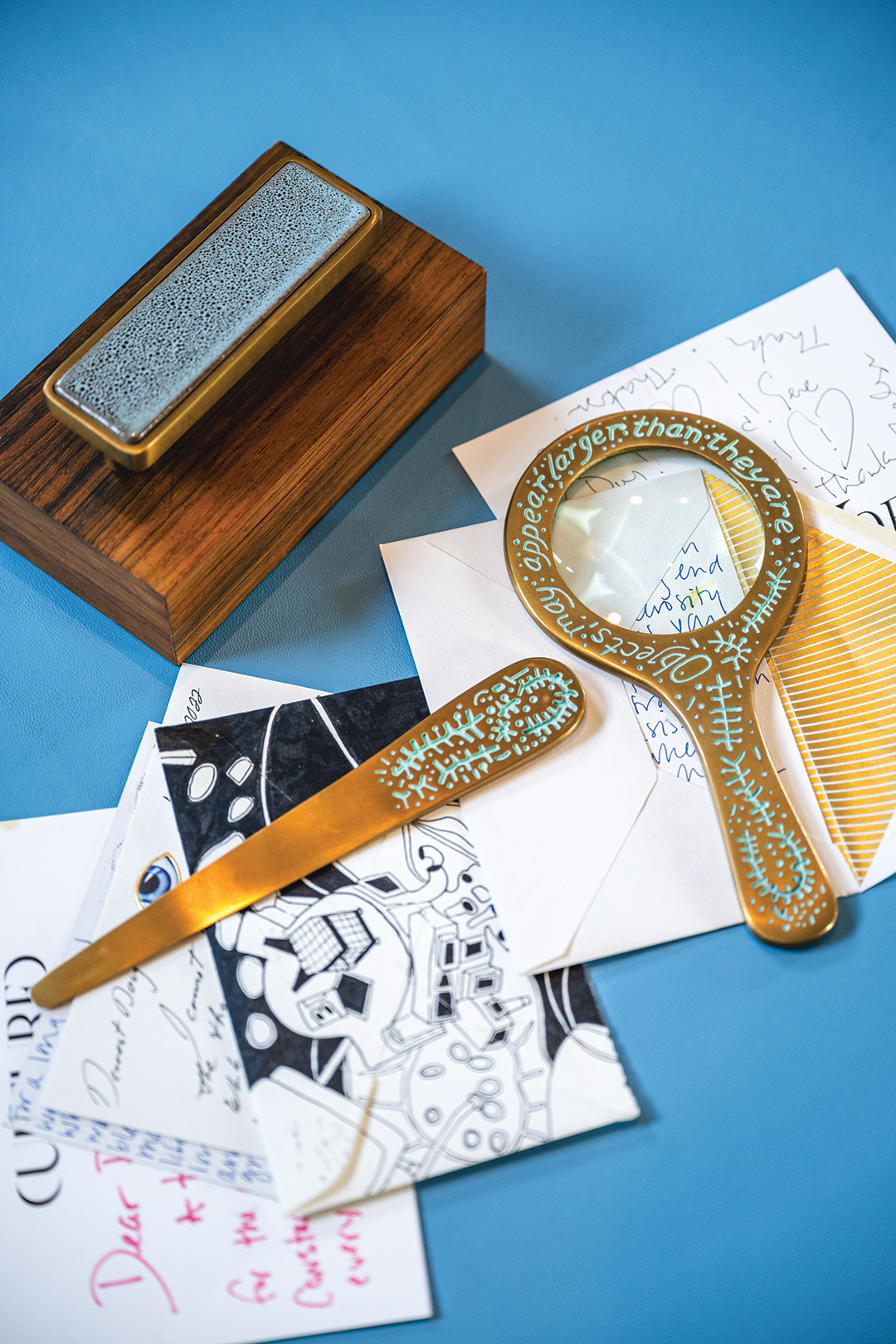 SHERWOOD FOREST MAGNIFYING GLASS BY MODERN MATTER; designed by esteemed artist Doug Meyer in burnished brass; $199; modern-matter.com