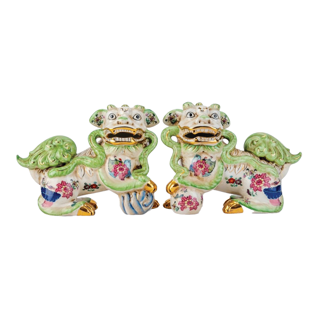 TOBACCO LEAF FOO DOGS BY HUNT & BLOOM; a pair of classic Foo dogs or guardian lions feature a hand-painted tobacco leaf motif; $268; huntandbloom.com