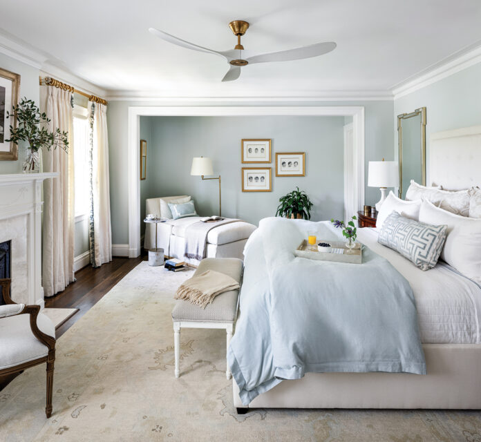 While some rooms, such as the foyer, retained historical details such as the grand central staircase, original hanging lantern, and moldings, other rooms needed attention. A new study, for instance, received a solid marble fireplace surround. “Most of the other fireplaces have wooden mantels, but marble is historically accurate and maintains the spirit of the house,” Legg explains. “Our goal was to keep the home’s authenticity while modernizing it for comfortable living.”