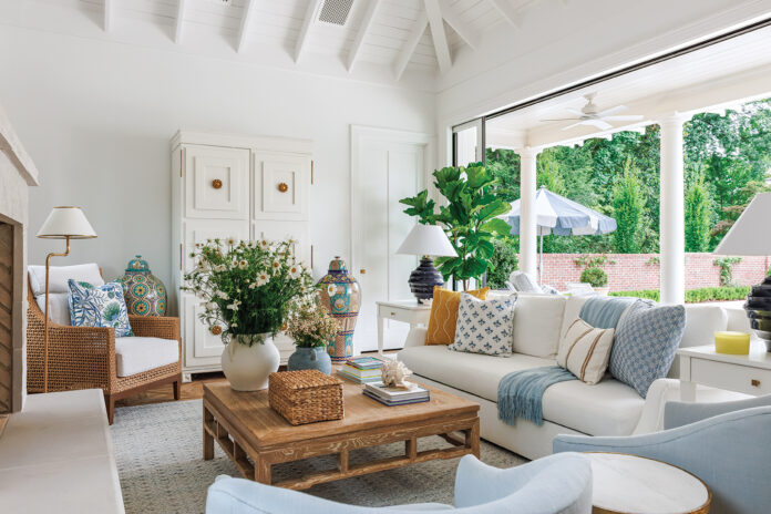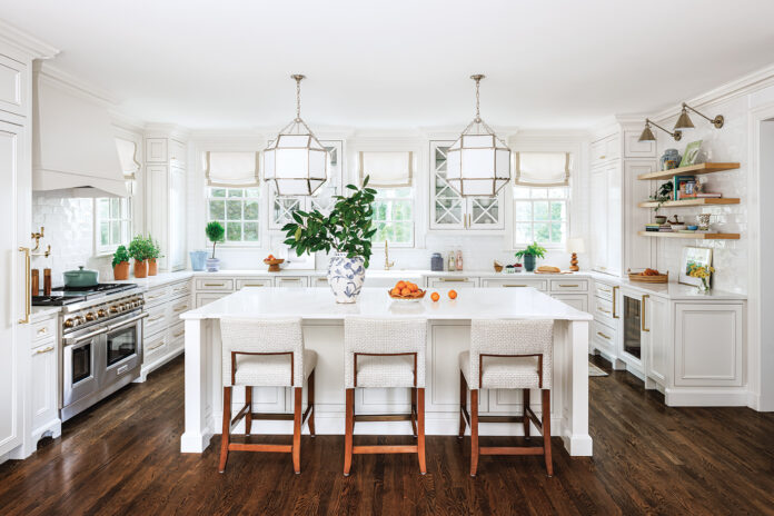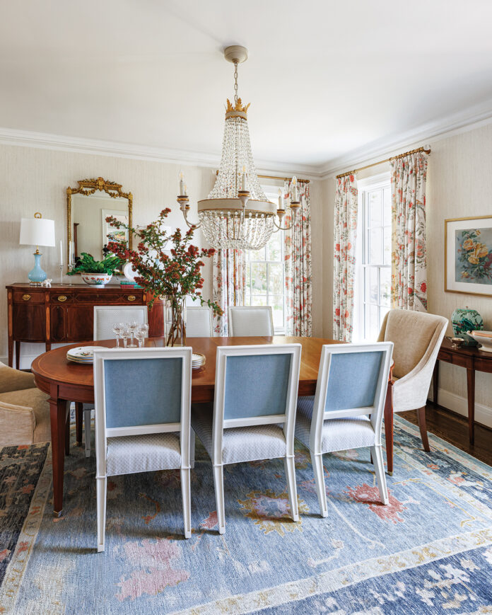 Rucker found the Matheson House was built in 1922 by real estate investors Jean and Junius Matheson. “I first connected with contractor Pat Parr of Classic Construction of North Carolina—he lives four doors down,” says Rucker. “He introduced me to architect James S. Collins and designers Sydney Foley and Emma Legg of Kindred Interior Studios.” Rucker asked them to restore the home to its Colonial Revival roots, removing piecemeal renovations from the last 100 years and adding new rooms to better serve his family.