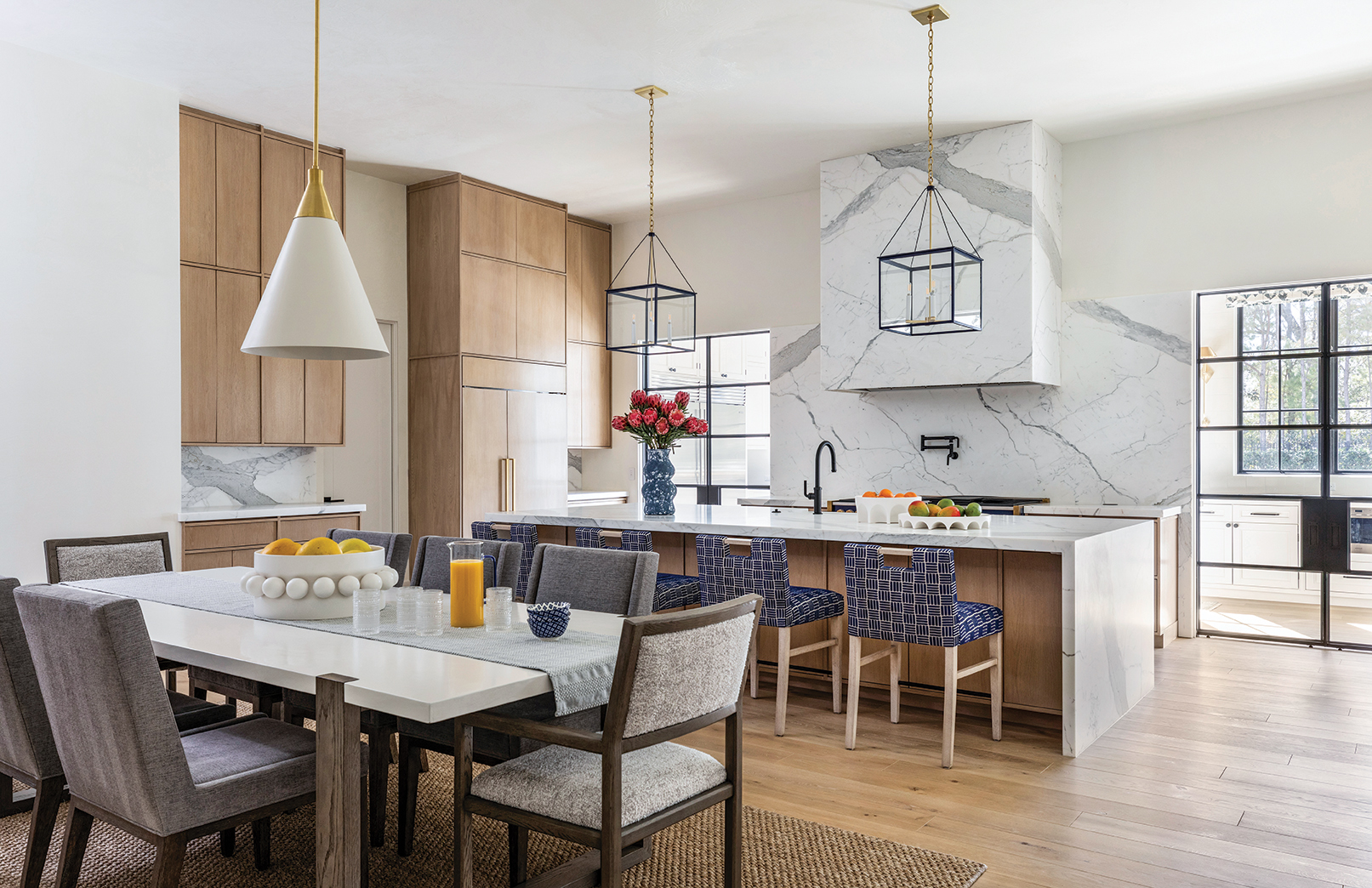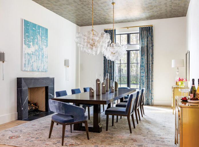 “Our overall concept was to create a highly customized elegant home that could easily transition from hosting large social events to intimate family gatherings. In addition to layout, the interior door placements allowed for that,” says King.