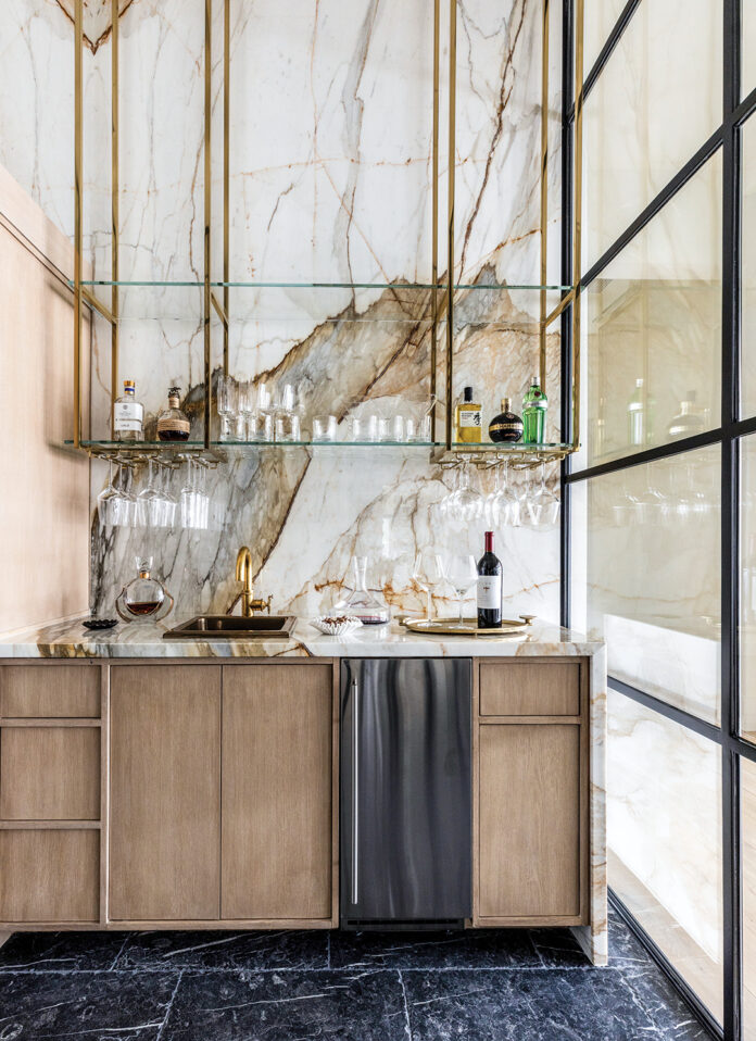 “On the open floor plan, the parlor and its adjacent wine room are jewels in the center of the home, bridging the private and public sides of the layout,” adds King.