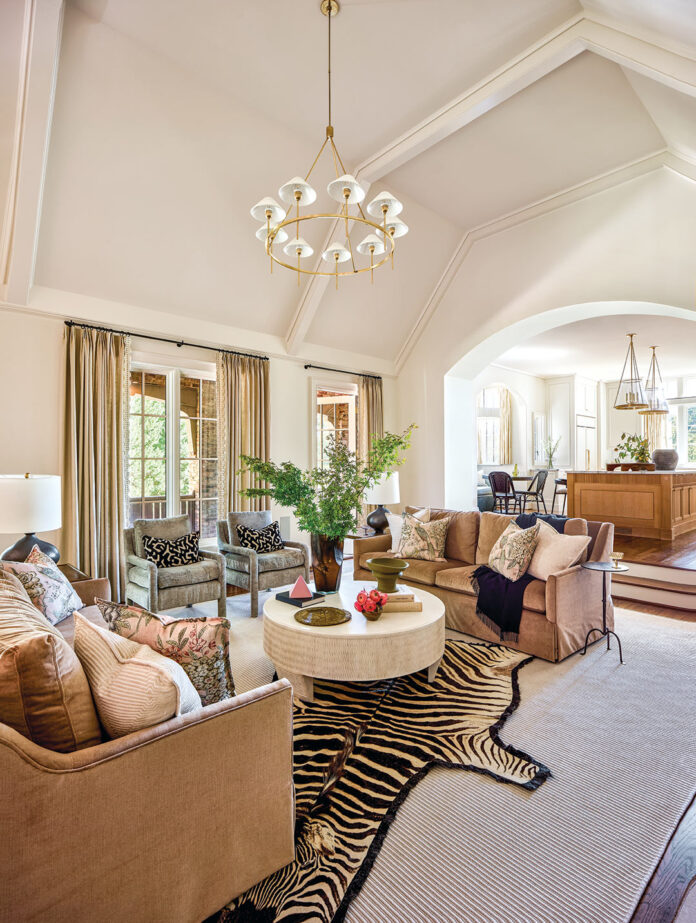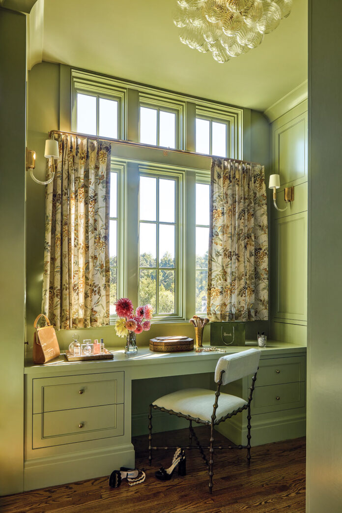 The owners also had a few treasures from their families they wanted to include in the house, among them a dining table, entry console, and side table in the primary sitting room. “I love when a client comes to the table with family heirlooms that have meaning to them,” adds Neely. “It’s the most fun to incorporate furnishings with a story.”